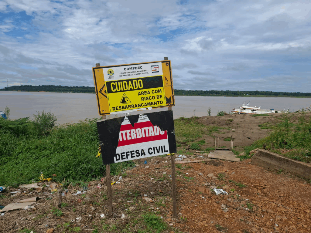 Nesta quarta-feira (5), a Defesa Civil deu continuidade às ações de monitoramento, visitando pontos afetados pelo fenômeno conhecido como “terras caídas” — processo em que áreas sedimentadas, devido às variações do nível do rio Madeira, tornam-se instáveis.