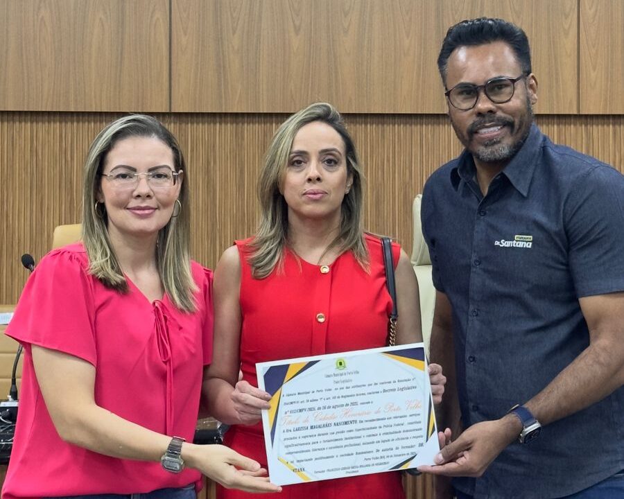 Porto Velho, RO — A Câmara Municipal de Porto Velho realizou, na manhã desta quinta-feira, uma sessão solene marcada por emoção e reconhecimento. A ocasião foi dedicada à entrega do Título de Cidadã Honorária à policial federal Larissa Magalhães Nascimento, ex-superintendente regional da Polícia Federal em Rondônia.