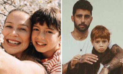 No vídeo, Scooby surgiu surfando ondas gigantes ao lado do filho mais velho do ex-casal, Dom, de 14 anos