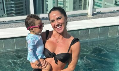 Graciele publicou em sua conta no Instagram diversas fotos em que aparece curtindo a piscina com a herdeira