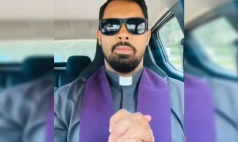 O pai do noivo fez imagens do padre, apenas de short, na casa paroquial, enquanto a mulher se escondeu no banheiroO padre da Paróquia Nossa Senhora...