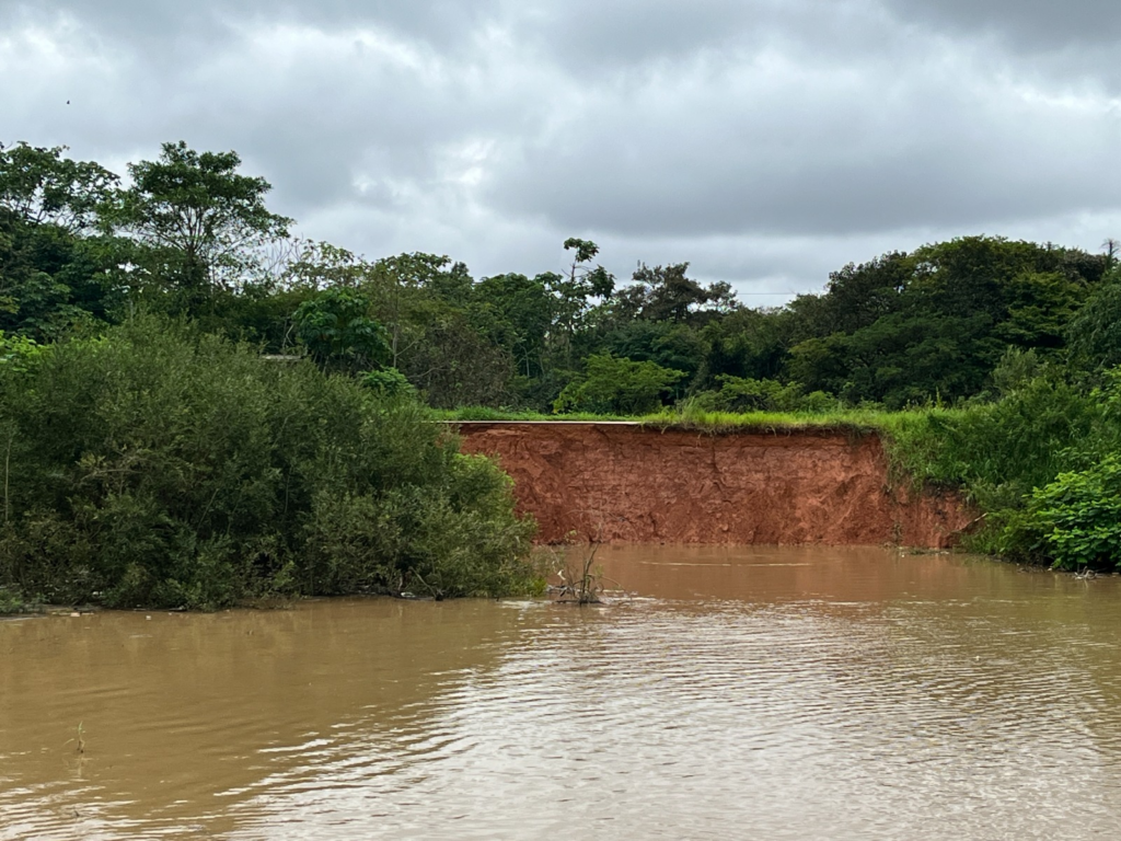 Segundo avaliação técnica, o aumento do volume de água provocado pelas chuvas dos últimos dias elevou a pressão nas estruturas laterais do canal, causando rachaduras na margem esquerda e risco iminente de deslizamento.