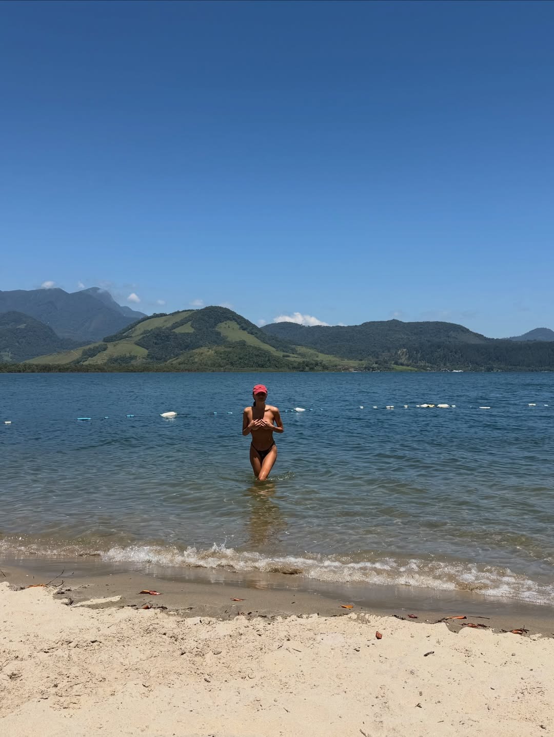 Sasha Meneghel posa topless na praia ao lado da família e celebra Natal com naturalidade