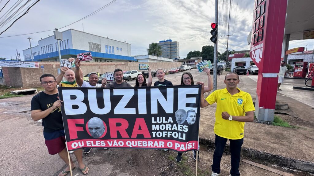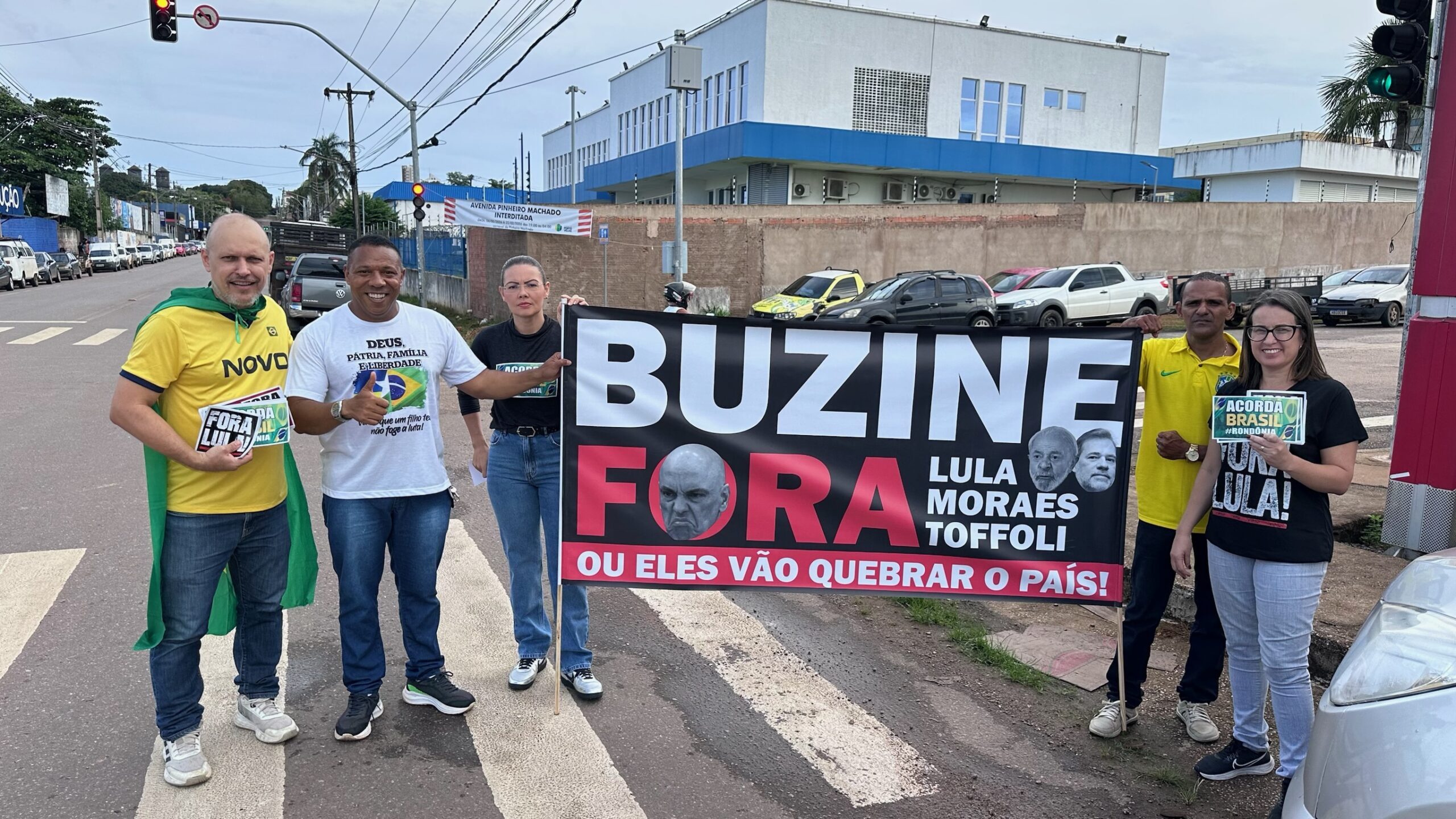 Em Porto Velho, Sofia Andrade percorreu avenidas da capital distribuindo panfletos com mensagens como “fora Lula”, “fora Alexandre de Moraes” e “fora Toffoli”, além de pedidos de liberdade para o ex-presidente Jair Messias Bolsonaro e defesa de anistia aos envolvidos nos atos investigados pela Justiça.