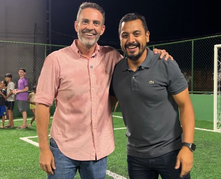 A entrega do campo foi celebrada com uma partida simbólica entre moradores do bairro e representantes da administração municipal