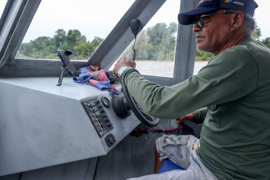 Foi nesse trajeto diário que nasceu também a decisão de transformar a própria história. Mesmo enfrentando desafios por ser a mais velha da turma, persistiu e concluiu sua formação. Posteriormente, participou da capacitação promovida pela Seduc em parceria com a Marinha do Brasil e conquistou a habilitação como monitora escolar fluvial. E, há dois anos, atua em uma das voadeiras do transporte escolar estadual, onde entre os estudantes que acompanha diariamente está sua neta. “Agora eu atravesso as crianças e minha neta para realizarem os sonhos delas, isso me emociona.”