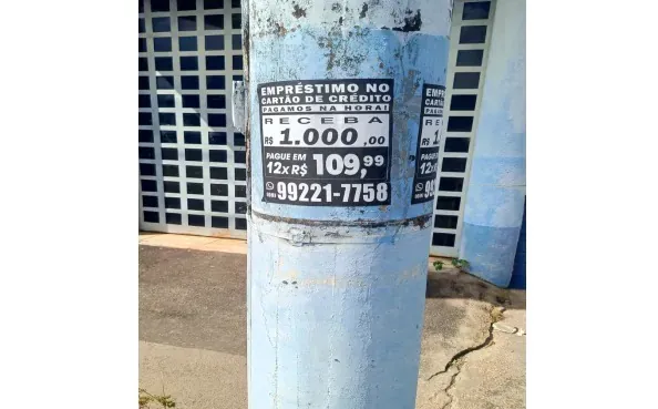 Segundo a vereadora, os postes da capital estão infestados de anúncios de empréstimos no cartão de crédito, com propagandas irregulares que prometem, por exemplo: “Pagamos na hora! Receba R$ 1.000,00. Pague em 12x de R$ 109,99”.