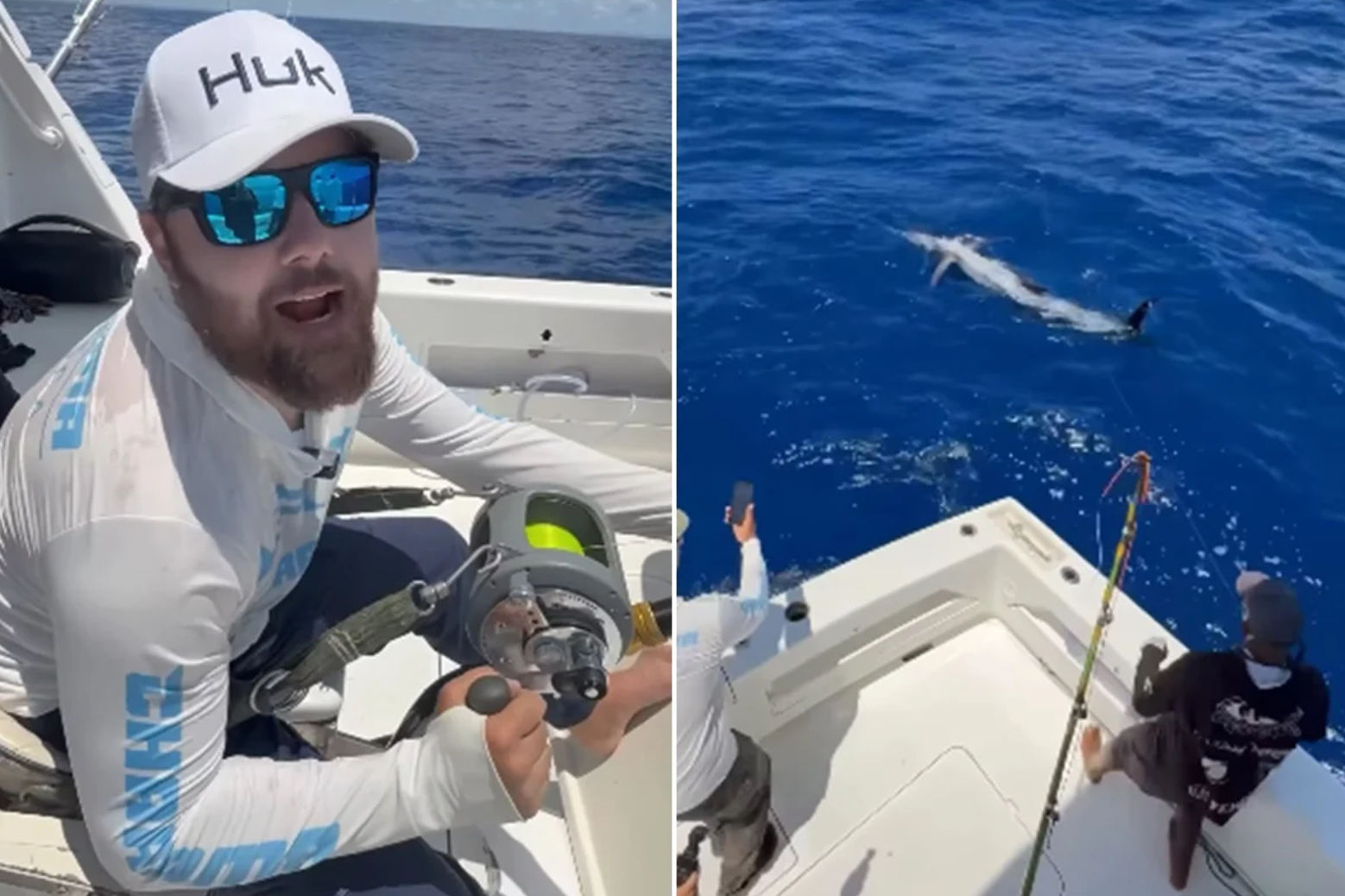 Zé Neto fisgou um marlim-azul gigante, com cerca de três metros e quase 300 quilos em Ilhéus, na Bahia